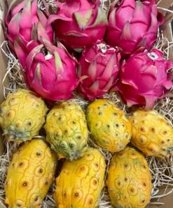 Disfruta de un pack exclusivo de frutas tropicales nacionales que combina la frescura vibrante de la pitahaya roja y el toque exótico y refrescante del kiwano, cultivadas con dedicación en nuestras tierras subtropicales.