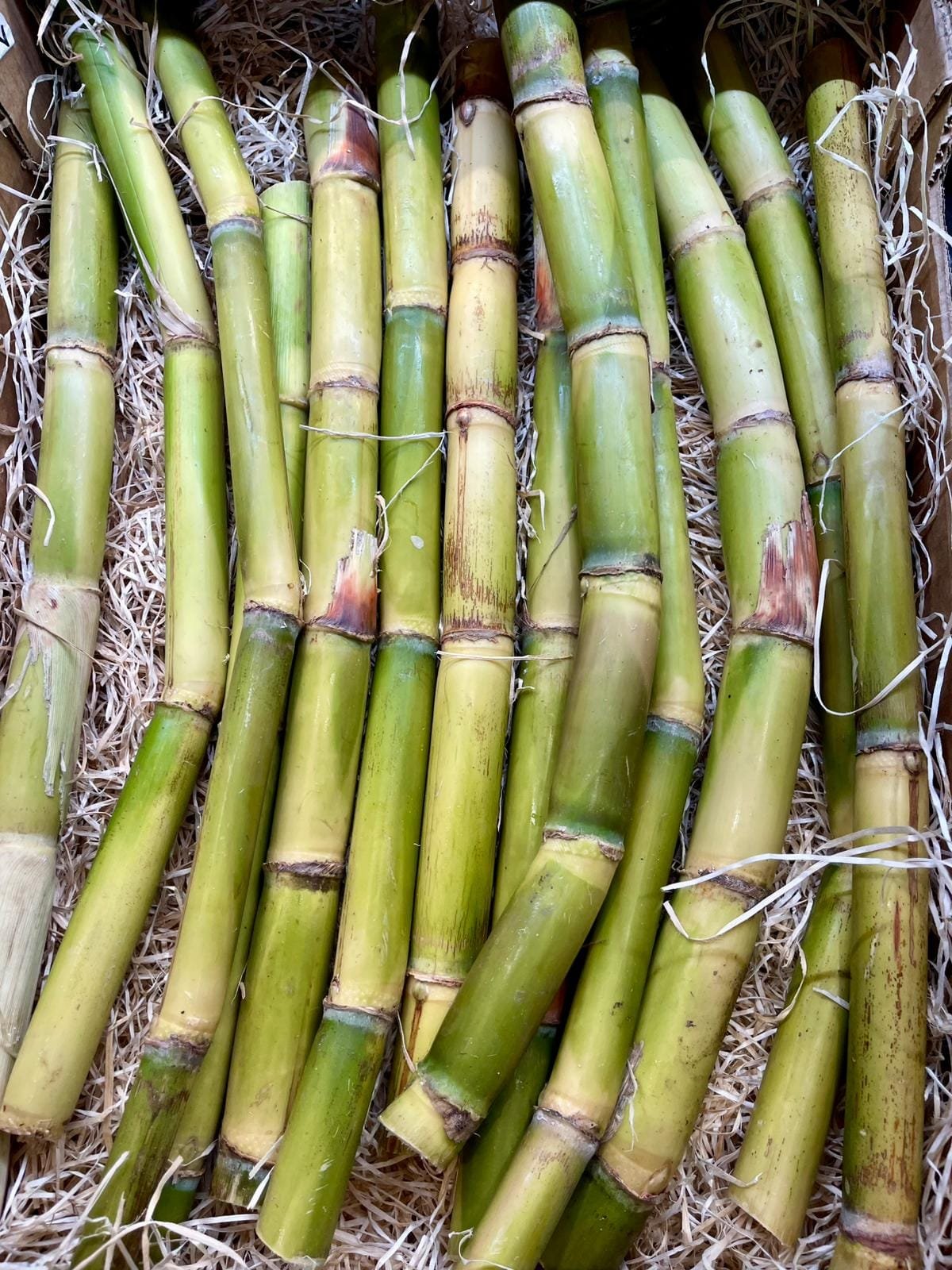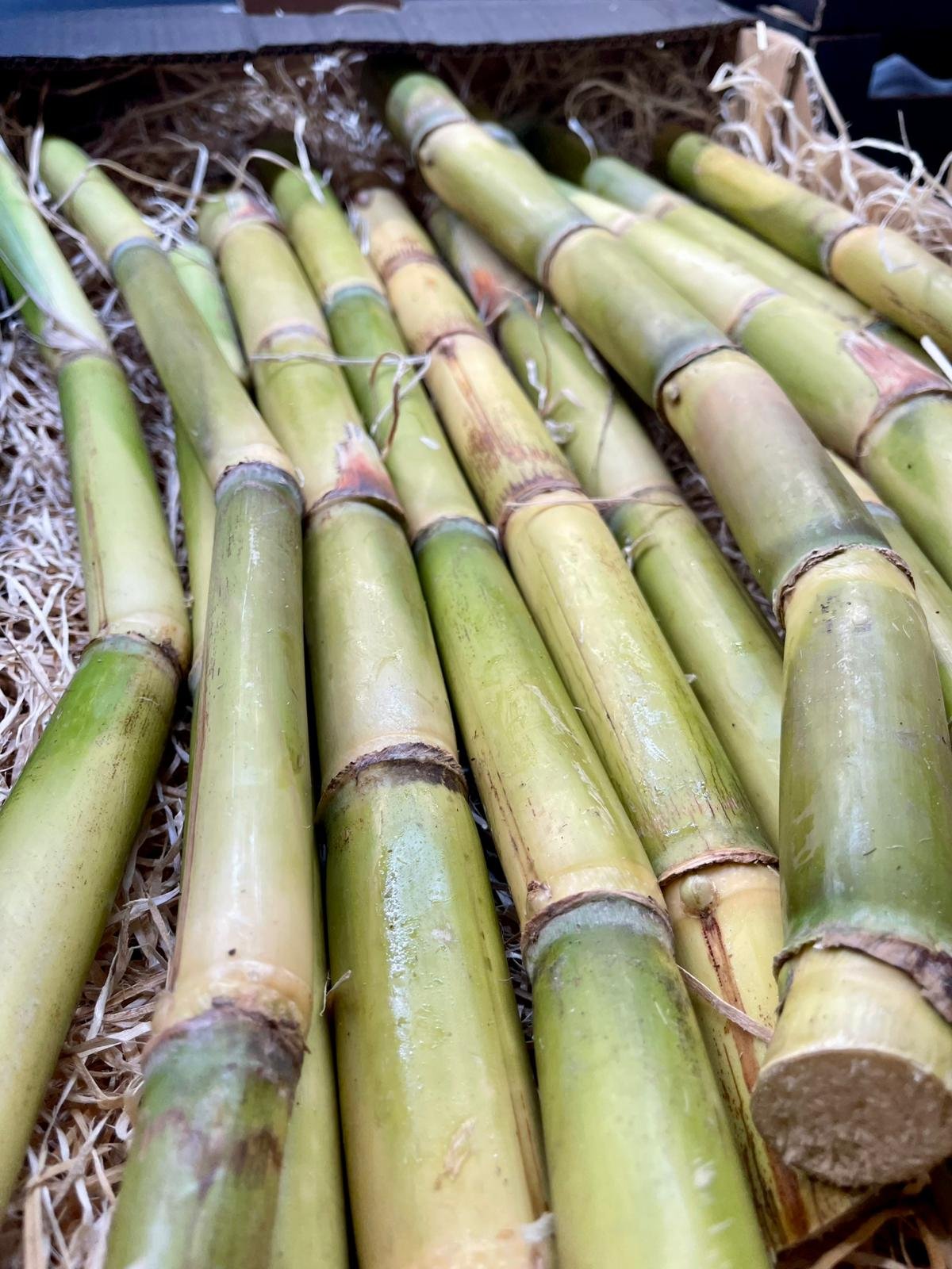Recibirás una caja con cañas de azúcar nacionales frescas y seleccionadas a mano, recolectadas en su punto óptimo de maduración.